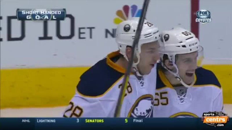 Latviešu uzbrucējs Zemgus Girgensons guvis uzvaras vārtus (mazākumā) un izdarījis rezultatīvu piespēli, sekmējot Bufalo „Sabres” uzvaru izbraukumā pār Fīniksas „Coyotes” (3:2). 20 gadus vecā uzbrucēja sniegums tika novērtēts ar mača pirmās zvaigznes titulu.