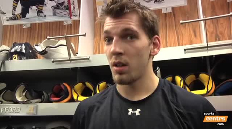 Piedāvājam latviešu hokejista Zemga Girgensona interviju pēc "Sabres" treniņa, kurā Zemgus tika iespēlēts centra uzbrucēja pozīcijā.