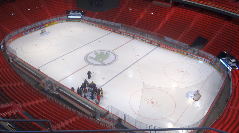 Pēc vakardienas uzvaras pār Vāciju šodien izlase trenējās brīvā režīmā un arī uz ledus valdīja brīva gaisotne. Treniņā rokas klēpī salikuši nesēdēja arī treneri, atsvaidzinot vecās iemaņas uz ledus, kamēr mūsu hokeja virsaitis pārbaudīja laukuma centra ledus izturību.