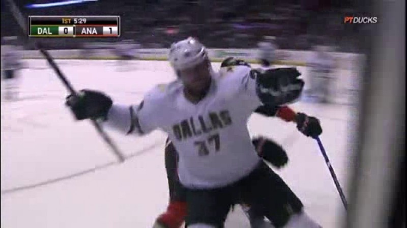 Sāpīgu zaudējumu Nacionālajā Hokeja līgā (NHL) pret Anaheimas ''Ducks'' piedzīvojis latviešu aizsargs Kārlis Skrastiņš un viņa pārstāvētā Dalasas ''Stars''. Minūti pirms pamatlaika beigām, zvaigznēm esot vadībā ar vienu vārtu pārsvaru, ''Ducks'' prata rezultātu līdzsvarot un nepilnas četras sekundes pirms papildlaika beigām gūt vēl vienus vārtus, tādējādi mačā uzvarot ar rezultātu 4:3. Skrastiņš laukumā pavadīja nepilnas 15 minūtes, bloķēja vienu metienu, aizsardzībā spēlēja itin veiksmīgi un spēli pabeidza ar neitrālu lietderības koeficientu.