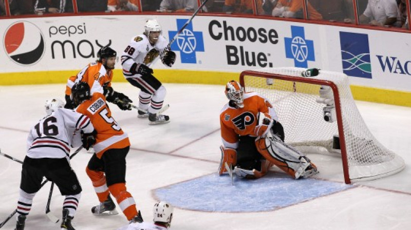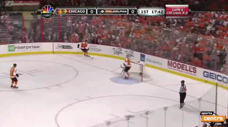 Nacionālās hokeja līgas (NHL) finālsērijas sestajā spēlē Čikāgas ''Blackawks'' papildlaikā ar 4:3 apspēlēja Filadelfijas ''Flyers'', uzvarot arī sērijā un iegūstot Stenlija kausu pēc 49 gadu pārtraukuma. Piedāvājam epizodes ar Oskaru Bārtuli (spēlē ar 3. numuru).