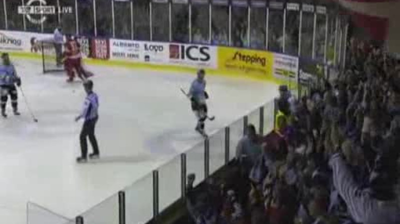 Trešā perioda sākumā «Almtuna» spēlētājs Kims Karlsons, izejot uz ledus, aizmirsa noņemt slidu uzlikas. Pēc notikušā smieklus nespēja valdīt komentētāji un arī paši hokejisti.