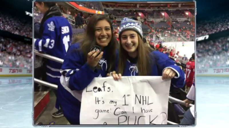 Aizvadītās nakts NHL mačā Toronto "Maple Leafs" uzbrucējs Džeimss van Rīmsdaiks vēlējās uzdāvināt fanēm ripu, taču pēc pāris nesekmīgiem mēģinājumiem atmeta ar roku. Tad stafeti pārņēma Toronto komandas rezultatīvākais spēlētājs, 2016. gada drafta pirmais numurs Ostons Metjūzs un bija sekmīgs jau pirmajā piegājienā. Galu galā fanes jutās ļoti apmierinātas.Video: NHL
