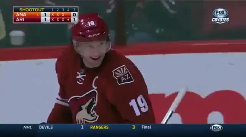 Nacionālās hokeja līgas (NHL) mačā Arizonas "Coyotes" kapteinis Šeins Douns ar pēcspēles metienu visai savdabīgā veidā pārspēja Anaheimas "Ducks" vārtsargu.Video: NHL