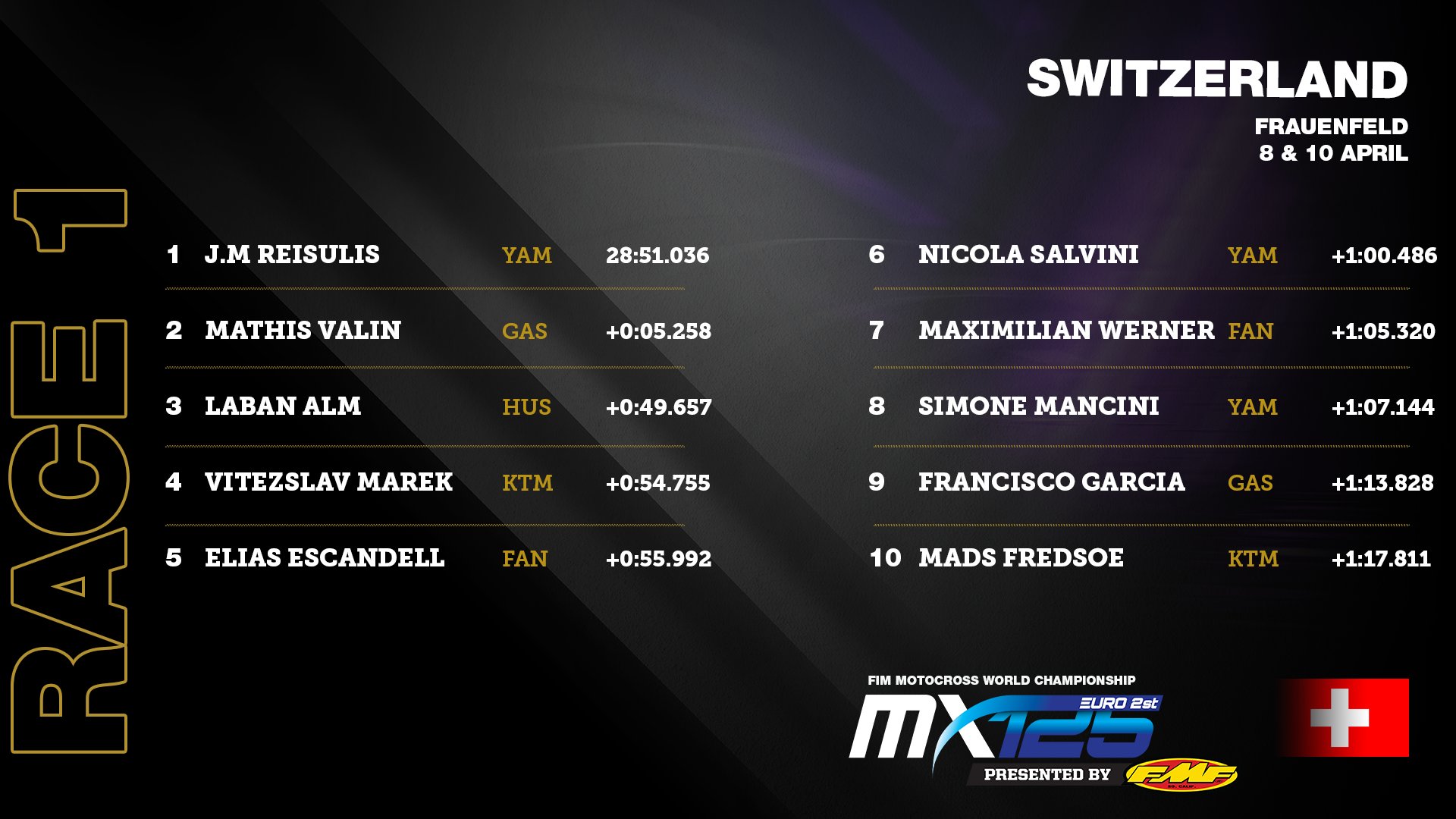 Šveicē startējis Pasaules motokrosa čempionāta trešais posms, kā arī Eiropas čempionāta posms 125cc klasē. Šajā posmā pie starta barjeras EČ 125cc klasē no Latvijas stājās Jānis Mārtiņš Reišulis un Tomass Šaicāns, bet prestižajā MXGP klasē uz starta izgāja Pauls Jonass.
