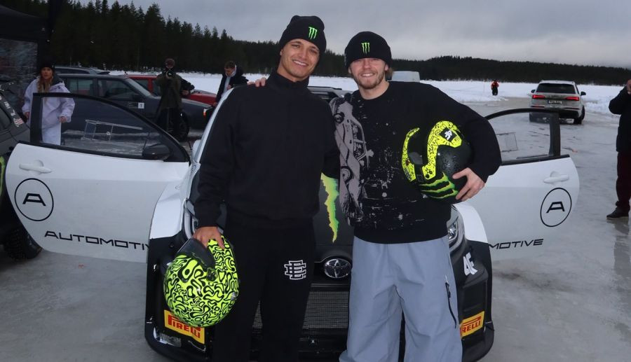 ''McLaren'' F1 pilots piedalījās īpašā sponsora ''Monster Energy'' rīkotā pasākumā, kur uz aizsaluša ezera Zviedrijā izmēģināja vairākas rallija un drifta automašīnas. Pasākumā piedalījās arī divi citi Monster atbalstīti braucēji – 2003. gada pasaules rallija čempions Peters Solbergs un viņa dēls Olivers Solbergs, kurš šogad uzvarēja Montekarlo WRC rallijā. Tieši Olivers Norisam ierādīja ''GR Yaris Rally2'' auto nianses – ar šādu modeli viņš pērn izcīnīja WRC2 titulu.