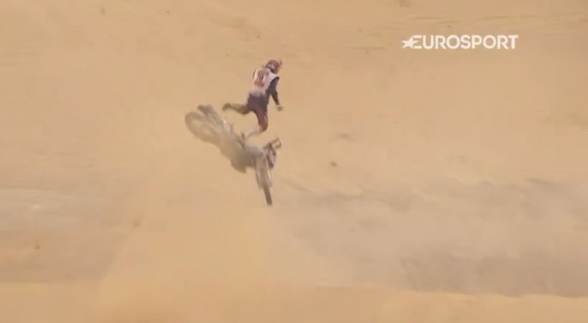 Diemžēl pēc iespaidīga lidojuma un sāpīgas piezemēšanās Dakaras rallijs ir beidzies spāņu motobraucējam Arno Ledo.