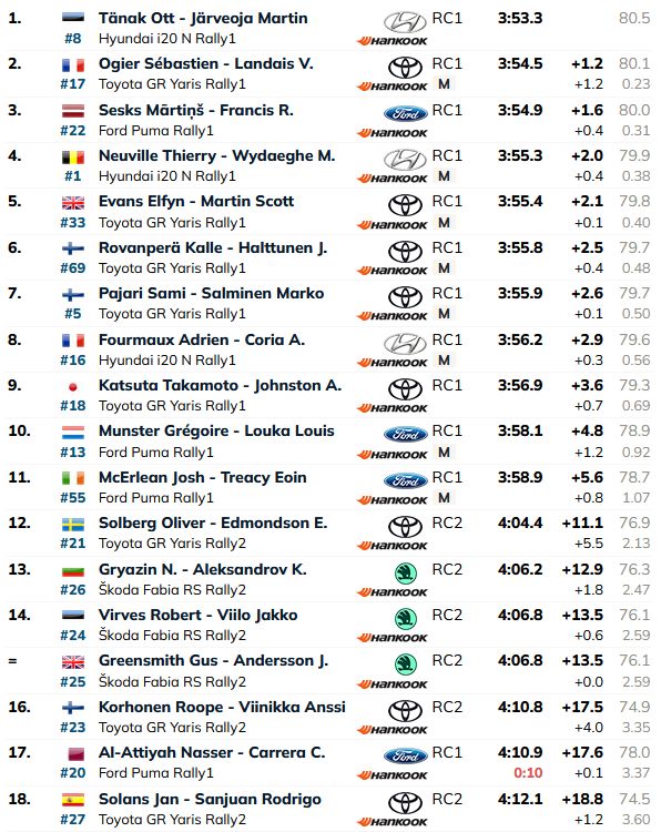 Turpinājumā vairums braucēju zaudēja Seskam, un tikai priekšpēdējā braucienā Ots Tanaks apsteidza Sesku. Noslēdzošajā brauciena pārī, kur sacentās divi WRC titula pretendenti Sebastjans Ožjē un Elfins Evans, ātrākais bija Ožjē, kurš par 0,9 sekundēm apsteidza Evansu.