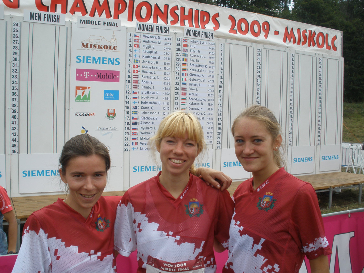 Jau sākot no 9.30 pirmās fināla dalībnieces devās distancē. Laura Vīķe startēja 9.40 un finišu sasniedza pēc 47 minūtēm un 53 sekundēm. Laura atzina, ka distancē kļūdas nepieļāva, tikai vietām nedaudz pirms punktiem saminstinājās, zaudējot ātrumu. Kopumā ar šodienas startu jaunākā Latvijas izlases dalībniece bija apmierināta. Pēc Lauras visa uzmanība tika pievērsta Aijai Skrastiņai, kura distanci uzsāka ļoti pārliecinoši un jau pirmajos radio un TV punktos bija starp līderēm. Distancē Aija noķēra vairākas skrējējas un Latvijas līdzjutējiem par ļoti lielu prieku, sasniedzot finišu, uzrādīja ātrāko laiku. Aija pēc finiša atzina, ka fiziski šobrīd nav savā labākajā formā, tāpēc ļoti centās koncentrēties uz to, lai distancē nepieļautu nevienu kļūdu. Ar ne tik lielu ažiotāžu no komentētāju puses finišu sasniedza Inga un vēl vairāk iepriecināja Latvijas līdzjutējus, jo uzrādīja otro labāko rezultātu. Līdz ar to pirmajās divās vietās bija Latvijas orientieristes. Inga distancē uz vienu kontrolpunktu pieļāva nelielu kļūdu, tomēr pārējie punkti tika atrasti bez liekām problēmām, tāpēc arī finišā ļoti iepriecinošs rezultāts. Vēlāk gan rezultātu tablo Latvijas izlases skrējējas tika nedaudz atbīdītas uz leju. Beigās Aija izcīnīja augsto 9. vietu un Ingai 11. rezultāts.