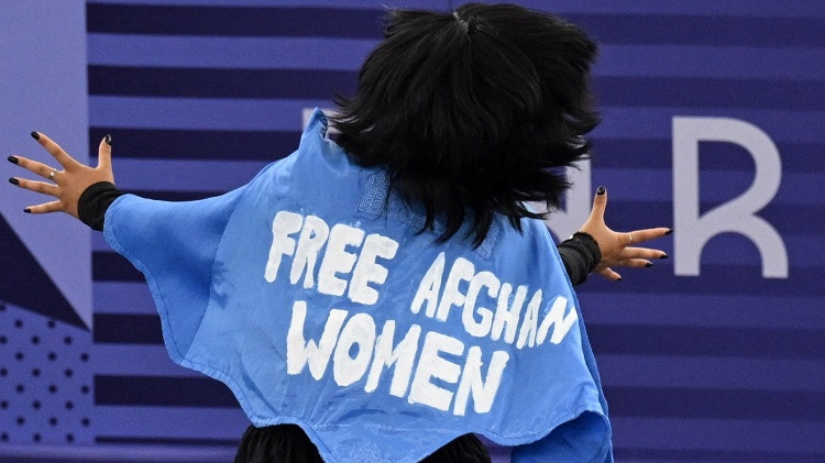 Breika dejotāja Maniža Talaša, kura Parīzes olimpiskajās spēlēs pārstāvēja bēgļu delegāciju, diskvalificēta par politiska paziņojuma paušanu. Viņa uzstāšanās laikā startēja ar apģērbu, uz kura bija aicinājums atbrīvot Afganistānas sievietes.
