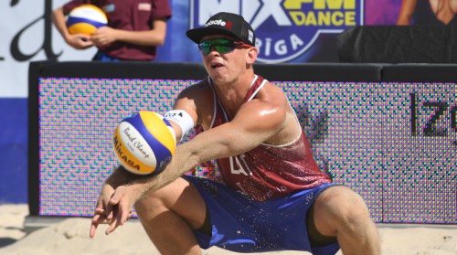 Eiropas pludmales volejbola čempionāta ceturtdaļfinālu sasniedza Latvijas vadošais pāris Aleksandrs Samoilovs un Jānis Šmēdiņš, kuri trīs setos pieveica ar pirmo numuru izliktos poļus Pjotru Kantoru un Bartošu Losjaku – 21:19, 19:21, 15:10.