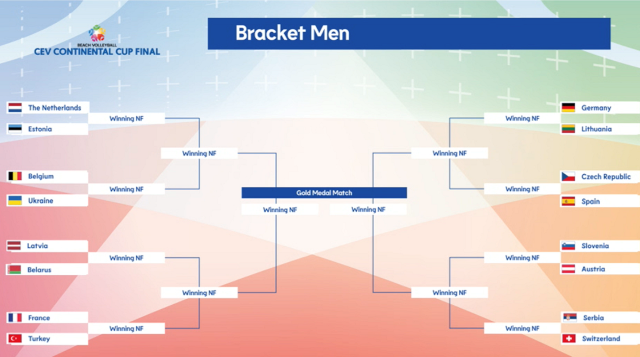 Pirmās spēles Latvijas komandas aizvadīs plkst. 14.00 un 14.50 pēc Latvijas laika. Vispirms Samoilovs un Šmēdiņš samēros spēkus ar baltkrievu otro pāri Mitrafanu/Abramenku, bet pēcāk Bedrītis/Rinkevičs cīnīsies ar Dzjadko un Pjatrušku.