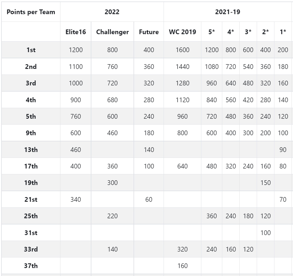 • Atgādinām, ka Pasaules tūres vietā tagad stājas "Beach Pro" tūre, kur sacensības notiks trijos līmeņos - 16 spēcīgākās komandas spēlēs "Elite16", nākamie 48 spēcīgākie dueti (tostarp 32 kvalifikācijā) sacentīsies "Challenge" turnīros, bet pārējiem būs iespēja spēlēt "Future" mačos.