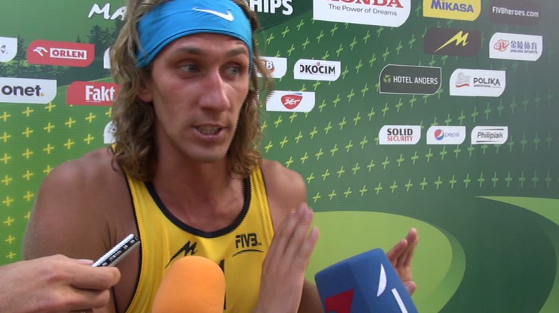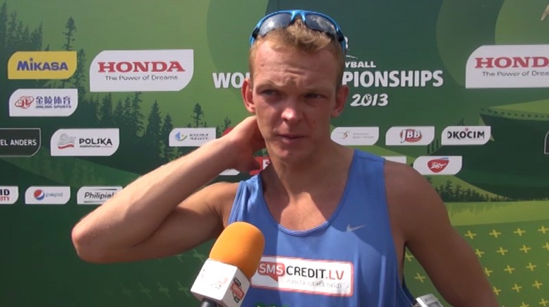 Pirmo uzvaru 2013. gada pasaules čempionātā pludmales volejbolā izcīnījis Latvijas duets Tomš Šmēdiņš un Ruslans Sorokins, kas nervozā trīs setu cīņā (16:21, 21:14, 17:15) pārspēja Nīderlandes vienību ar Dānu Spijkeru Kristiānu Varenhorstu sastāvā. Pēc spēles Sportacentrs.com aprunājās ar Ruslanu Sorokinu