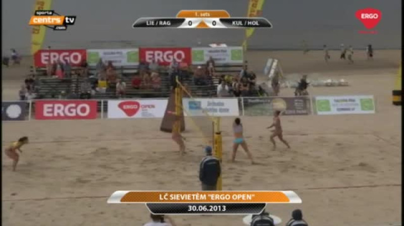Ar Kerti Kulmas un Elīzes Hollasas (Igaunija) uzvaru noslēdzies pirmais Latvijas čempionāta pludmales volejbolā "Ergo Open" posms. Finālā Igaunijas sportistes pieveica Latvijas duetu Ilze Liepiņlauska/Sanda Ragozina ar 2:0 (21:17, 21:19).
