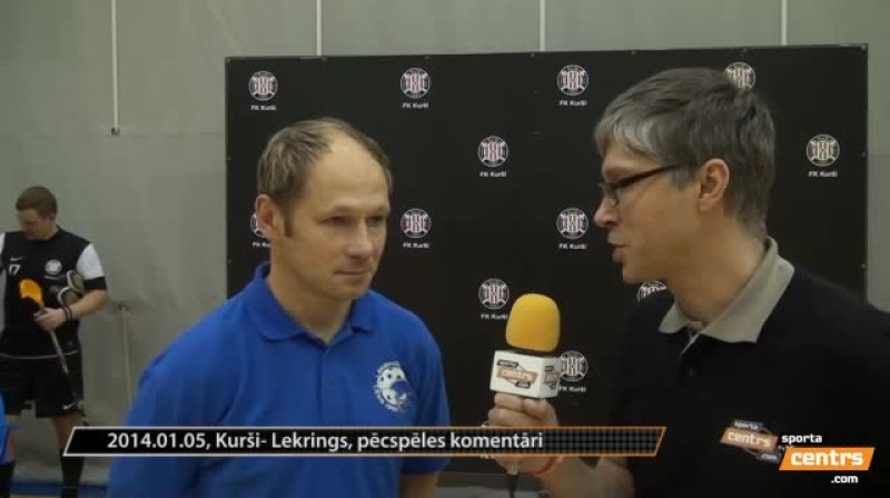 Pēcspēles komentāri pēc "Kuršu" un "Lekringa" florbola virslīgas spēles 2014. gada 5. janvārī Liepājā.