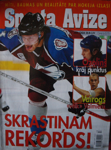Spēlējot Kolorado Avalanche kreklā pret Vankūveras Canucks (zaudējums 4:5), Kārlis Skrastiņš pa pretinieku vārtiem izdara sešus metienus. Neviens tovakar no talantīgās Avalanche komandas nav tik aktīvs, kā... aizsardzībā spēlējošais Scratch (Viņa vēlāko gadu NHL iesauka. Amizanti, ka pirmajos gados Nešvilā, latvieti sauca par Senks, draudzīgi kariķējot Kārļa angļu valodas izrunu - thanks, pateicos).