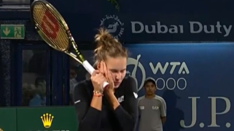 Apvienoto Arābu Emirātu lielākajā pilsētā tuvojas noslēgumam Dubaijas "WTA 1000" dubultspēļu turnīrs uz cietā seguma. 24. februāra pusfinālā Latvijas-Ukrainas tandēms Aļona Ostapenko un Ludmila Kičenoka cīnījās pret Veroniku Kudermetovu un Ludmilu Samsonovu. Kādā epizodē Ostapenko raidītā bumba trāpīja Kudermetovai pa seju. Video: tennisfull / WTA