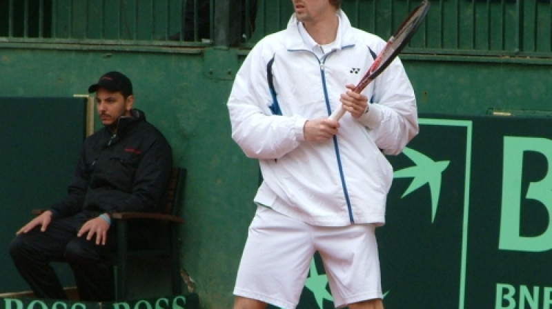 Lai gan rezultāts mums šobrīd ir labvēlīgs, nekādu atslābināšanos pirms rītdienas dubultspēles nedrīkst pieļaut”, uzsver Latvijas Deivisa kausa komandas kapteinis Ģirts Dzelde. Atgādinām, ka Eiropas Āfrikas zonas 2.grupas mačā starp Latvijas un Grieķijas komandām, šodien uzvaras pirmajās vienspēlēs izcīnīja Andis Juška un Deniss Pavlovs.