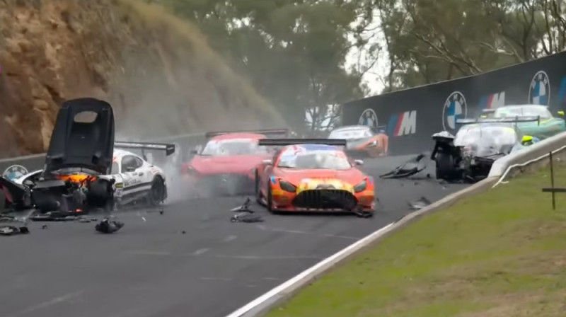 Baterstas 12 stundu sacensības Austrālijā tika apturēts pēc smagas avārijas, kurā bija iesaistīts sacīkšu līderis, igauņu pilots Ralfs Arons. Incidents notika aptuveni trīsarpus stundas pirms finiša pie "Forrest's Elbow" līkuma, kad Arona vadītais "Craft-Bamboo Racing" vienības "Mercedes-AMG" lielā ātrumā ietriecās trasē stāvošā automašīnā.