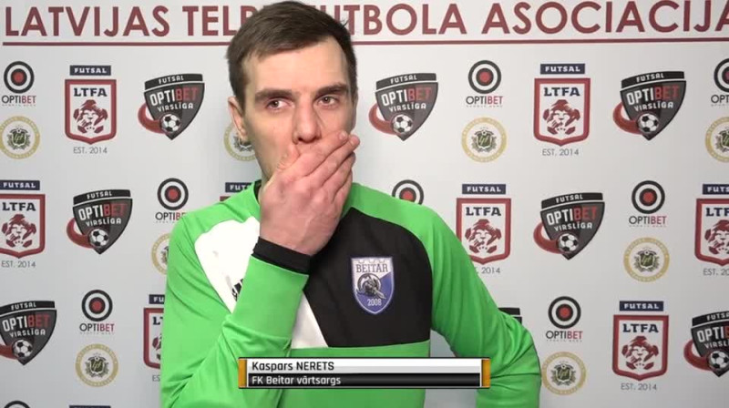 Latvijas Telpu futbola asociācijas "Optibet" Virslīgas 16. kārtas spēlē "BEITAR" ar 6:3 pieveica "Rabu". Sportacentrs.com piedāvā pēcspēles interviju ar uzvarētāju komandas vārtsargu Kasparu Neretu.