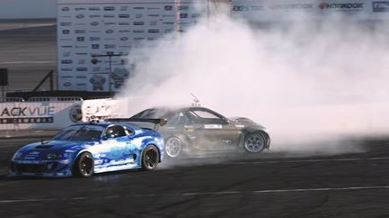 Driftera Bluša pirmā cīņa Amerikā ar iespaidīgo "HGK E92 Eurofighter"