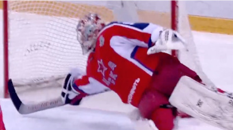 Kontinentālā hokeja līga (KHL) publiskojusi "play-off" otrās kārtas labākos atvairītos metienus. Pirmajā vietā ir Maskavas CSKA vārtsargs Iļja Sorokins. Video: KHL