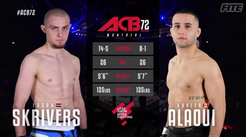 Vakarnakt savas karjeras vienu no spožākajām cīņām Kanādas pilsētā Monreālā aizvadīja Latvijas vieglākā svara (-62 kg) MMA cīkstonis Edgars Skrīvers (16-4), kurš trīs raundu cīņā ar dalītu tiesnešu lēmumu pēc punktiem uzveica kanādieti Ksavjē Alaoi (8-2).