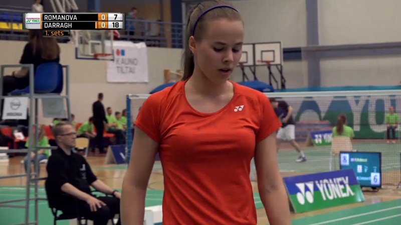 Pasaules reitinga badmintona turnīrā “Yonex Latvia International” , jau 1/32 finālā zaudējumu piedzīvoja Latvijas sieviešu badmintona pirmā rakete Jekaterina Romanova, kas 2 setos (7-21, 12-21) atzina ar 5. numuru izsētās īrietes Rachael Darragh pārākumu. Līdz ar to Romanovai dalība turnīrā noslēgusies, jo zaudējumi piedzīvoti arī dubultspēles pārī ar Liānu Lenceviču, 3 setos piekāpjoties francūzietēm Ainoa Desmons/Vimala Heriau (21-10 17-21 21-14), bet jauktajās dubultspēlēs kopā ar Gunti Lavrinoviču zaudēts īslandiešiem Kristofer Darri Finnsson/Margrét Johannsdottir 9-21, 24-26.