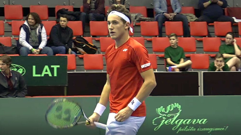 Deivisa kausa izcīņas Eiropas/Āfrikas zonas otrās grupas pirmajā kārtā Latvijas un Norvēģijas cīņās tikās Mārtiņš Podžus un Kaspers Rūds, kurš apliecināja savu favorīta statusu, uzvarot trijos setos 6:3, 6:1 un 7:5 un izvirzot vadībā norvēģus.Piedāvājam jūsu uzmanībai cīņas momentus