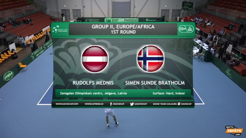 Deivisa kausa Eiropas/Āfrikas zonas otrās grupas pirmajā kārtā ceturto zaudējumu pēc kārtas piedzīvoja Latvijas tenisa izlase. Rūdolfs Mednis aizvadīja maču pret Simenu Sundi Bratholmu, diemžēl latvietis neizmantoja mačbumbu un visā mačā zaudēja ar 5:7, 6:7(5) un 6:7(6). Šis bija pēdējais mačs duelī starp Latvijas un Norvēģijas komandām. Latvijas izlases nākamās cīņas norisināsies aprīlī, kad par palikšanu Eiropas/Āfrikas zonas otrajā grupā būs jācīnās ar Marokas izlasi.Piedāvājam spēles labāko momentu apskatu.