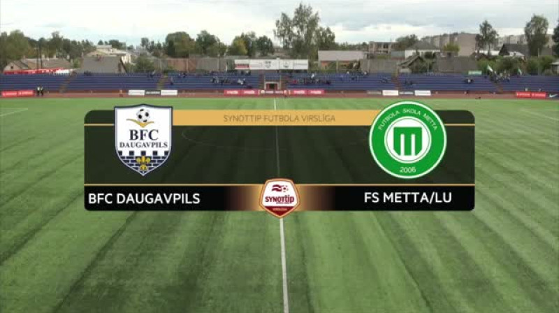 "SynotTip" futbola virslīgā aizraujošu un rezultatīvu spēli aizvadīja "Daugavpils" un "Metta/LU" vienības. Jau 6.minūtē, apspēlējot vairākus daugavpiliešus, precīzs bija Roberts Uldriķis. Divdesmit minūtes vēlāk precīzs bija Abudllahi un jau 2:0 Mettas labā. Puslaika izskaņā 11.metru soda sitienu realizēja mājinieki un pārtraukumā devās minimālos iedzinējos.Otro puslaiku komandas iesāka ar vairākām bīstamām izspēlēm. Vēlāk divas reizes precīzi spēlēja mājinieki un izvirzīja savu komandu vadībā ar 3:2, taču "Metta/LU" nepadevās un 85.minūtē nopelnīja 11. metru soda sitienu, kuru veiksmīgi realizēja un izrāva neizšķirtu. Pašā mača izskaņā abām no komadām bija iespēja izvilkt uzvaru, taču vārtsargi izrādījās pārāki.Piedāvājam spēles labāko momentu apskatu.Spēli atkārtojumā skaties Sportacentrs TV, 19.septembrī, plkst. 11:30