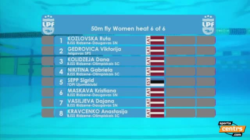 Gabriela Ņikitina Latvijas čempionātā peldēšanā pārspējusi sev piederošo Latvijas rekordu, priekšsacīkstēs 50 metru tauriņstilā distancē finišējot pēc 27.16 sekundēm. Vakara sesijā viņai šo rekordu būs iespēja uzlabot vēlreiz. Sacensību tiešraide pieejama kanālā Sportacentrs.com TV, kā arī portālā Sportacentrs.com. Vakara sesija sāksies 17:00.