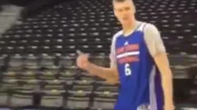 Porziņģis trāpa "Karija metienu" no tribīnēm