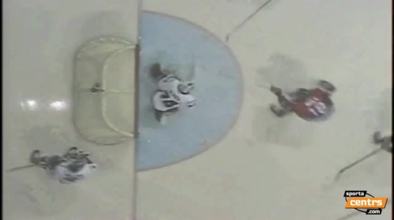 Hokejists neticamā veidā glābj savas komandas vārtus