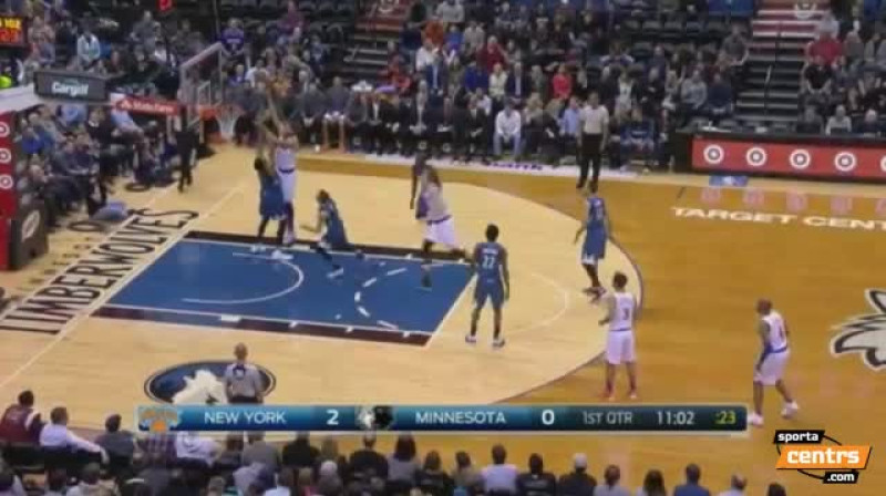 Kristaps Porziņģis biežo noteikumu pārkāpumu dēļ aizvadīja tikai 12 minūtes Nacionālās basketbola asociācijas spēlē pret Minesotas „Timberwolves”, gūstot sešus punktus. Viņa pārstāvētā „Knicks” tikmēr aizvadīja pārliecinošu maču un ar rezultātu 103:95 pārtrauca savu septiņu zaudējumu sēriju.Kristaps Porziņģis 12 nospēlētajās minūtēs, kas ir viņa mazākais spēles laiks šosezon, guva sešus punktus (1p. 2/2, 2p. 2/6) un savāca divas atlēkušās bumbas. Viņa spēles laiks bija ierobežots četru piezīmju dēļ, un sev ierastajā ritmā Porziņģis varēja spēlēt tikai pirmajā ceturtdaļā, kamēr pārējie izgājieni laukumā sanāca īsi un saraustīti. Mazāk par 20 minūtēm Porziņģis nebija nospēlējis kopš 2015. gada pēdējās spēles pret Detroitu. Šonakt Porziņģim arī viens bloķēts metiens un viena pārtverta bumba, kā arī viena kļūda. Viņa +/- rādītājs plus desmit, kas bija otrs labākais komandā, atpaliekot tikai no Karmelo Entonija (+14).