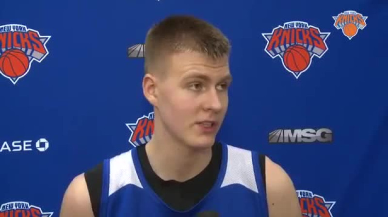 Nacionālās basketbola asociācijas (NBA) kluba Ņujorkas "Knicks" garais latvietis Kristaps Porziņģis gatavojas debijai planētas spēcīgākajā līgā, kur pirmajā mačā viņš varētu būt pamatsastāvā. Pirms pēdējā pārbaudes mača viņš ir apņēmības un cerību pilns.Video: nyknicks.com