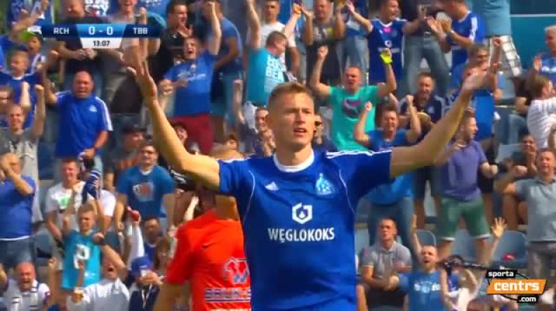 Vārtus Polijas Ekstraklase guvis Eduards Višņakovs, palīdzot Hožuvas "Ruch" pārspēt ''Termalica'' - 4:1.