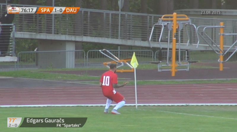 SMScredit.lv Virslīgas spēlē Jūrmalas "Spartaks" savā laukumā ar 2:1 pārspēja "Daugavpili". Vienus no diviem vārtiem uzvarētāju labā guva Edgars Gauračs, kuram tā bija pirmā spēle pēc atgriešanās komandā.