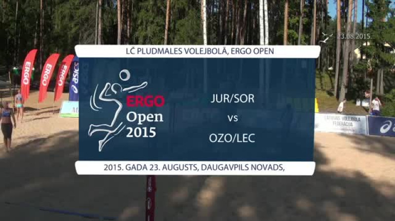 Daugavpils novada Špoģu atpūtas bāzē "Vīrogna" vakar noslēdzās kārtējais Latvijas čempionāta posms pludmales volejbolā.Finālā dāmām cīnījās sacensību galvenās favorītes. Ar otro numuru izliktās Inese Jursone un Lana Sorokina trīs setos pārspēja pirmo numuru Martu Ozoliņu un Alisi Leci. Pirmajā setā Ozoliņa/Lece uzvarēja ar 21:18, taču nākamajos divos pārākas bija Jursone/Sorokina – 21:15 un 15:10.