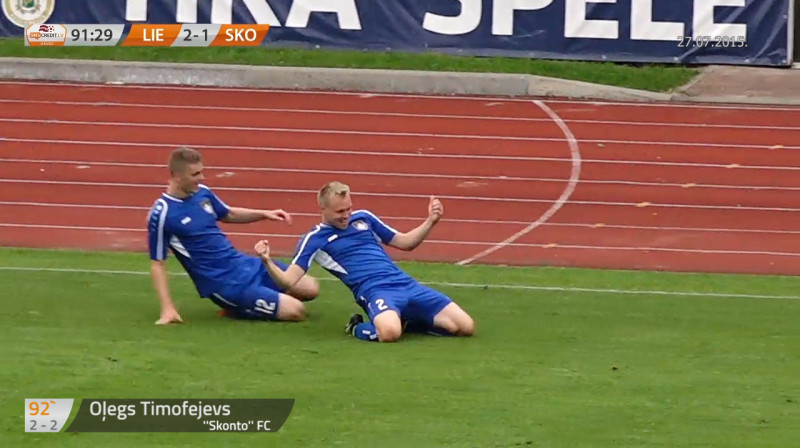 SMScredit.lv Virslīgas 15.kārtas centrālajā spēlē "Liepāja" savā laukumā šodien cīnījās 2:2 ar Rīgas "Skonto". Liepājnieki no 0:1 panāca 2:1 un bija ļoti tuvu uzvarai, tomēr kompensācijas laikā "Skonto" ar Oļega Timofejeva pūlēm izrāva 2:2.