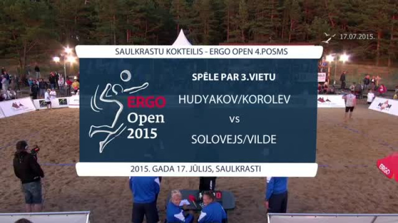 Pludmales volejbola turnīrā "Saulkrastu kokteilis" bronzas spēlē tikās Solovejs/Vilde un Hudjakovs/Koroļovs. Pirmajā setā Latvijas volejbolisti bija pārāki ar 21:17, tomēr Krievijas duets prata atspēlēties un izcīnīt trešo vietu turnīrā. Otro setu Hudjakovs/Koroļovs uzvarēja ar 21:14, bet trešajā bija pārāki ar 15:11.