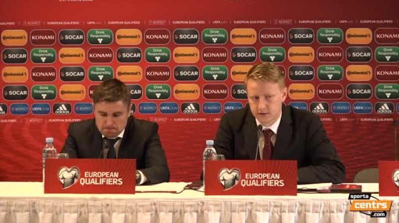 Skonto stadionā, neilgi pēc Nīderlandes izlases ierašanās Latvijā, norisinājās abu valstsvienību treniņi, kas šodien spēkosies Eiropas čempionāta kvalifikācijas cikla spēlē plkst. 21:45. Piedāvājam nelielu ieskatu Latvijas un Nīderlandes galveno treneru komentāros preses konferencē par gaidāmo spēli.