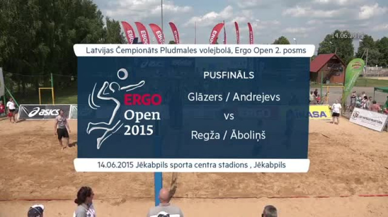 Šodien Jēkabpilī norisinās Latvijas pludmales volejbola čempionāta otrais posms vīriešu duetiem. Pirmajā pusfināla spēle Āboliņš/Regža smagā trīs setu cīņā pārspēja Glāzeru un Andrejevu