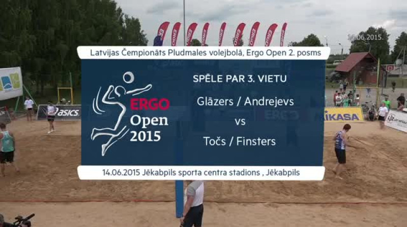 Latvijas čempionāta pludmales volejbolā otrajā posmā šodien cīņā par bronzu Točs/Finsters divos setos ar 21:15 un 21:19 uzvarēja Glāzeru/Andrejevu.