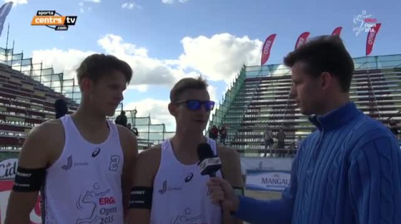 Latvijas pludmales volejbola čempionāta pirmajā posmā Majoru pludmalē šodien Mārtiņš Pļaviņš un Hermans Egleskalns fināla spēlē divos setos ar 21:14 un 21:15 pārspēja Haraldu Regžu un Armandu Āboliņu. Piedāvājam interviju ar spēles uzvarētājiem.