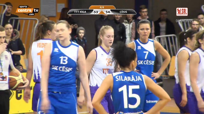 LSBL finālsērijas pirmajā spēlē TTT Rīga tikai ar 60:56 pārspēja SK Cēsis. Pirms spēles 4. ceturdaļās rīdzinieces bija vadībā ar 53:44, tomēr spēja gūt vien 7 punktus šajā spēles noslēguma posmā. Tas gan bija pietiekami lai nosargātu uzvaru uzvaru un izvirzītos vadībā finālsērijā līdz 3 uzvarām ar 1-0.. Nākamā komandu tikšanās notiks sestdien, 11. aprīlī Cēsu sporta namā.