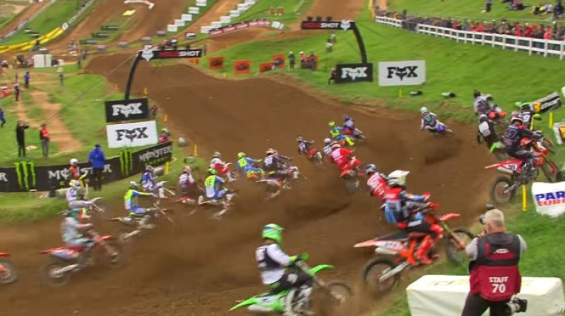 Pasaules motokrosa čempionāta septītajā posmā MXGP klasē abos braucienos līdz uzvarai aizcīnījās sezonas līderis Tims Gajsers. Pauls Jonass pirmajā braucienā guva stabilu piekto vietu, bet otrajā braucienā pēc starta bija pacēlies uz otro vietu, pēc tam apdzina Benu Vatsonu un kādu brīdi pat bija līderis. Vēlāk viņš brauca trešais, bet kritiens lika noslīdēt uz piekto vietu. Pēdējā aplī vēl viens kritiens un finišs sasniegts astotajā pozīcijā. Piedāvājam atskatu uz svarīgākajiem notikumiem abās klasēs.