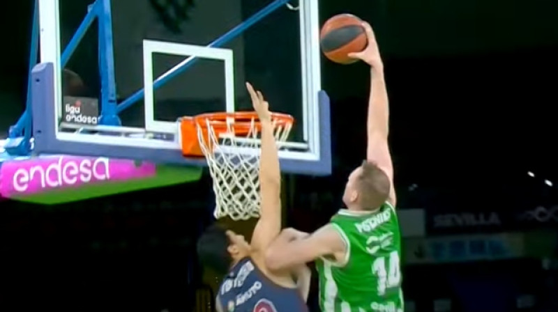 Spānijas basketbola spēcīgākā līga (ACB) apkopojusi aizvadītās nedēļas labākos momentus. Sestajā vietā ierindots Seviljas "Real Betis" latviešu centrs Anžejs Pasečņiks. Video: ACB