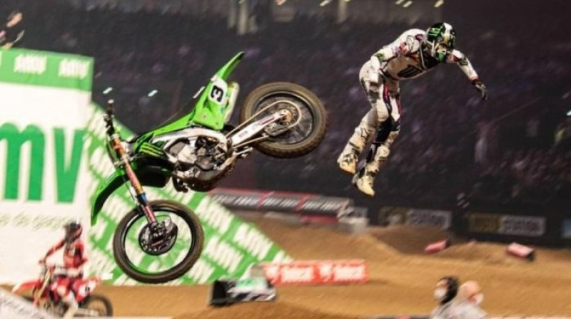 Šodien Parīzē norisinās starptautiskas superkrosa sacensības, kurās startē vairāki vadošie motokrosa braucēji no pasaules čempionāta un arī Amerikas. Diemžēl otrais brauciens bēdīgi beidzās aizvadītās MXGP sezonas vicečempionam Romēnam Fevram, kurš piedzīvoja neveiksmīgu lēcienu ar smagu piezemēšanos. "Kawasaki" rūpnīcas komandas franču sportists esot traumējis kāju. Negadījuma brīdī viņš atradās otrajā vietā aiz līdera Marvina Muskvina.